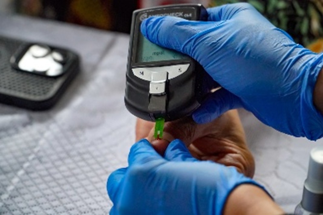 Petugas kesehatan dari fasilitas layanan kesehatan di Kota Palangka Raya melakukan pemeriksaan gula darah menggunakan glukometer sebagai upaya deteksi dini penyakit tidak menular. Layanan ini disambut antusias oleh warga yang datang ke lokasi festival.