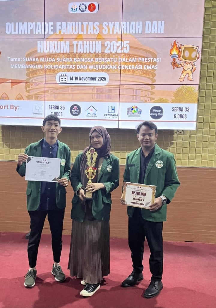 Tim UIN Palangka Raya yang beranggotakan Muhammad Syar’i Ramadhoni, Ahmad Rifki, dan Annisa Rahmawati tampil impresif sepanjang kompetisi. Mereka menunjukkan penguasaan isu-isu hukum aktual, analisis yang terukur, serta argumen yang tersusun rapi. Pada sesi debat utama, tim ini berhasil meraih juara 1 setelah mengalahkan tim dari Universitas Palangka Raya, melalui penyampaian argumen yang dinilai lebih kuat, substansial, dan relevan.